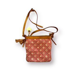 Dooney & Bourke Orange Tan Crossbody Purse Crossword Hearts Logo Handbag