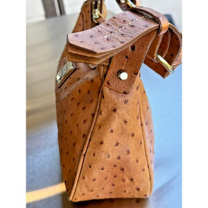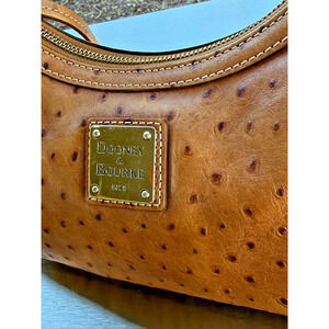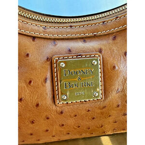 Dooney & Bourke Ostrich Leather Hobo Bag Beige Tan Shoulder Purse Medium