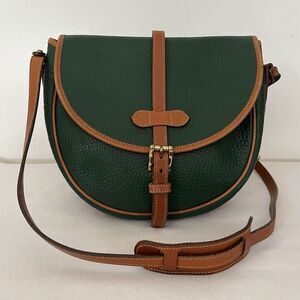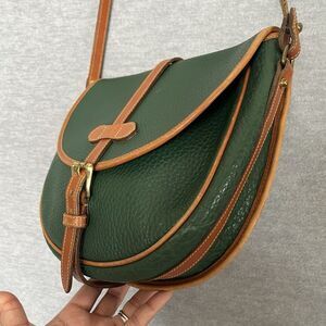 Vintage Dooney & Bourke Overland Crossbody Bag Hunter Green Pebble Grain Leather Saddle Equestrian