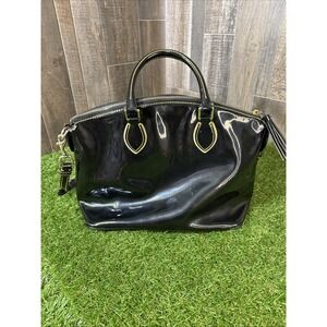 Dooney & Bourke Patent Leather Satchel Crossbody Black Red Lining
