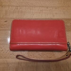 Dooney & Bourke Patent Leather Zip Around Wallet Wristlet Red/Orange