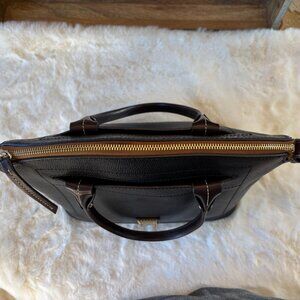 *The bottom has a small indent and a light scratch. The inside of handles have light wear on them. There is a light scratch on the side of bag.