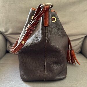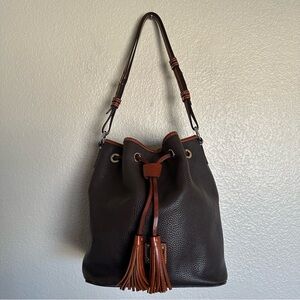 Dooney & Bourke Pebble Grain Aimee Drawstring Bucket Shoulder Bag Brown