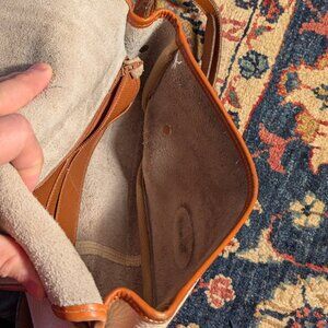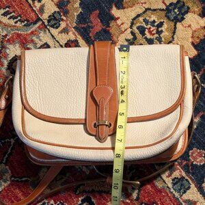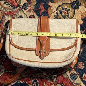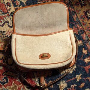 Dooney & Bourke crossbody bag, full grain pebbled leather, used but excellent condition. D&B call these colors "Bone" and "Caramel".