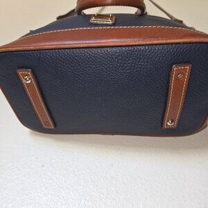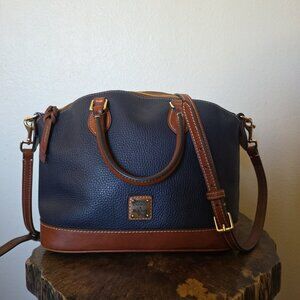 Dooney & Bourke Pebble Grain Darcy Domed Satchel Crossbody Navy Tan Leather
