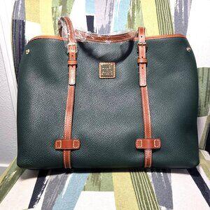 Dooney & Bourke Pebble Grain Side Snap Tote In Forest Green Leather Shoulder Bag