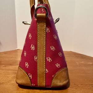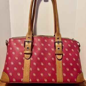 Dooney & Bourke Pebble Leather Satchel Berry Pink DB Logo Coquette Bag Tan Trim