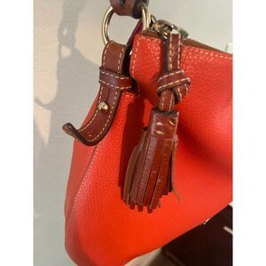 Dooney & Bourke Pebble Leather Tassel Pocket Hobo Shoulder Bag Purse Orange and brown 13x13x5