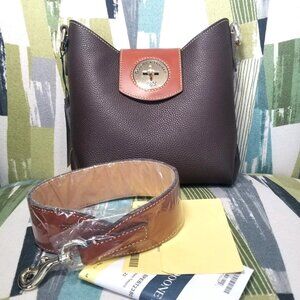 👜🎯Dooney & Bourke Pebble Turnlock Sac 22 Leather Shoulder Bag In Brown Tmorro👜