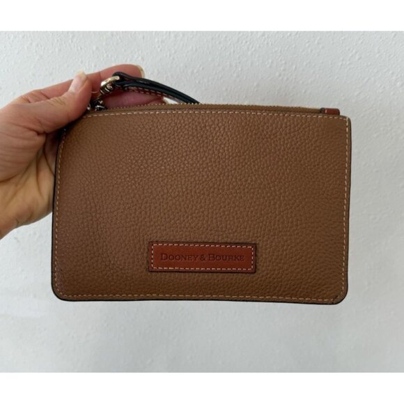 Dooney & Bourke Pebbled Brown Leather Wristlet Wallet Pouch Zipper Red Lining