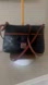 Chic Dooney and Bourke crossbody with a classic black pebbled leather body. Tan leather trim adds elegance. Perfect for daily use. There is some corner wear. Interior is red. Zippers work great. Minor strap wear.