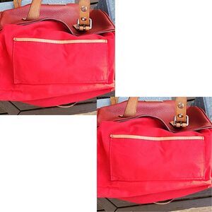 Pre-owned Dooney and Bourke Pebbled Leather Kendra Satchel Handbag. Made from luxurious pebbled leather with a canvas lining, this medium-sized satchel features a zip closure, silver hardware accents, and a detachable crossbody strap for added convenience. The red exterior color with tan/brown handle/strap color gives it a classic and designer look, perfect for everyday use. With inner pockets, bottom studs, and an adjustable strap, this handbag offers both functionality and fashion in one chic accessory. Approximate measurements 6" depth 8" height and 12" width.