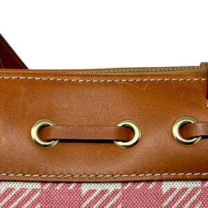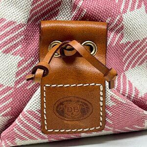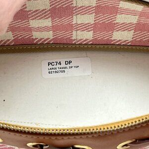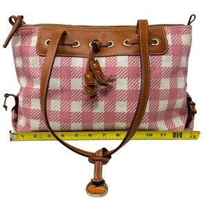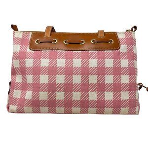 Dooney & Bourke Pink & Beige Checkered Canvas Tote Bag With Leather Accents