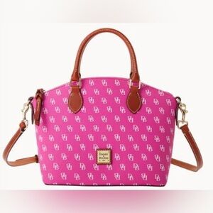 Dooney & Bourke Pink Satchel with Gold Hardware and Monogram Pattern