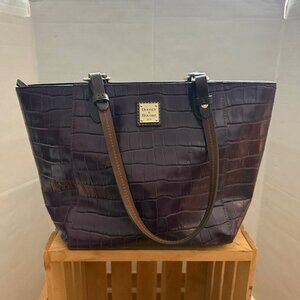 Dooney & Bourke Purple Oakdale Janie Tote Croc Embossed Leather Tote Bag Purse