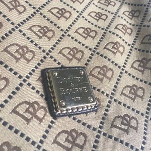 Small light and medium brown Dooney & Bourke purse with zipper purse. Has dark brown leather handle and accents. Purse has scratches on the gold D&B emblem. Purse has 13.5 inch base.