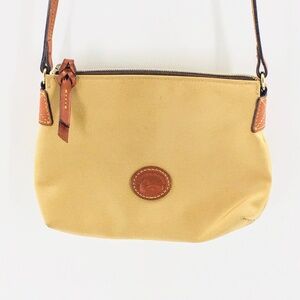 Dooney & Bourke Purse Small Nylon Tan Brown LeatherTrim Crossbody Pouchette Bag