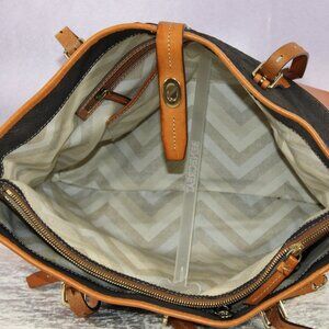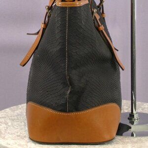 Dooney & Bourke Python Embossed Leather Tote – Black/Tan Trim