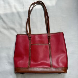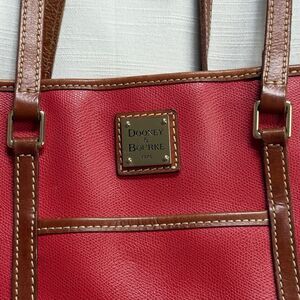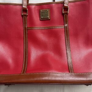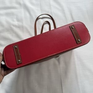 Dooney & Bourke Red And Tan Pebbled Leather Top Zip Medium Size Tote Bag