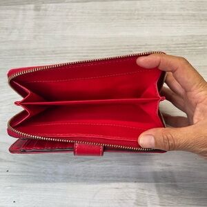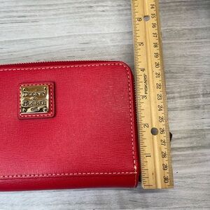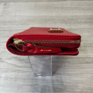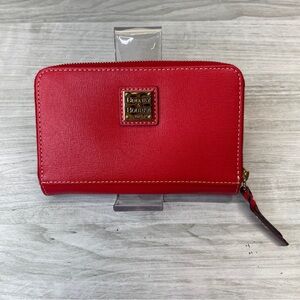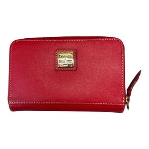 Dooney & Bourke Red Coated Canvas Compact Wallet Zip Pouch Credit Card Holder