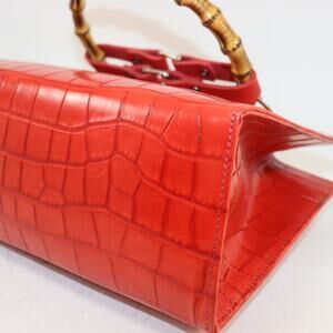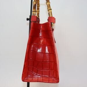 Dooney & Bourke Red Croc Embossed Bag w/ Bamboo Handles Made in USA