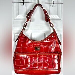 Dooney & Bourke Red Crocodile Embossed Leather Hobo Bag Purse