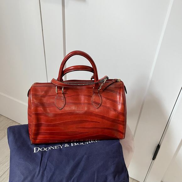 Dooney & Bourke Red Leather Animal Print Satchel Tote Bag