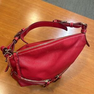 Features adjustable shoulder strap, two exterior zip-close pockets, one large interior zip-close pocket, and one small multi-function slot.