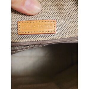 A versatile Dooney & Bourke satchel in a vibrant red leather with tan accents, offering both style and functionality. Features a spacious interior with a secure zipper closure, making it ideal for daily use or travel. An adjustable shoulder strap provides added convenience for hands-free carrying.