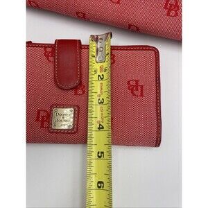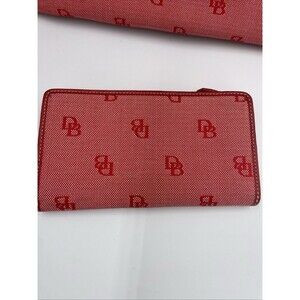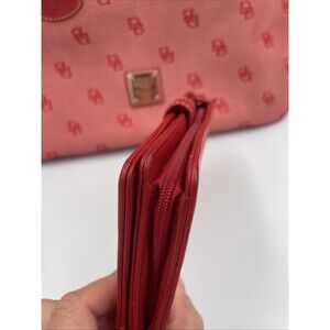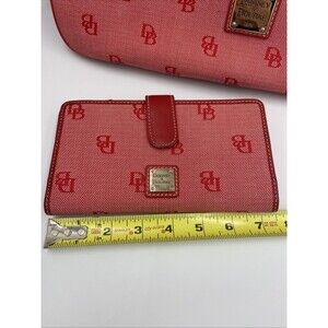 Dooney & Bourke Red Monogram Canvas Leather Trim Large Domed Satchel Bag Wallet