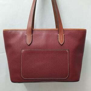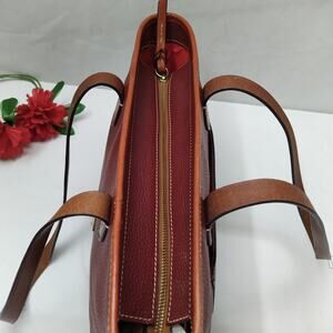 Dooney & Bourke Red Pebbled Leather Double Handles Zipper Tote Bag