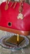 Chic red leather satchel with brown accents. Perfect for stylish outings. Durable and elegant design. Interior: Has 2 slip pockets, 1 large cellphone pocket, and 1 zipper pocket. 1 slip pocket closes with a snap. The lining is red cloth. All pockets are trimmed in tan leather. Double handle drop is approx. 4”.