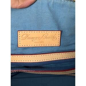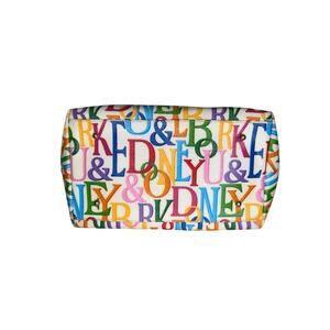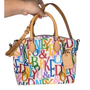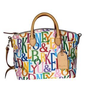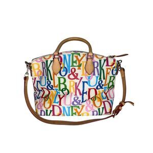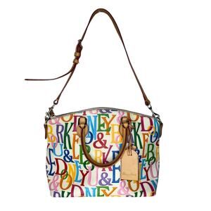 Dooney & Bourke Retro Grafica Logo Multicolor Rainbow Covered Canvas Satchel Vachetta Leather