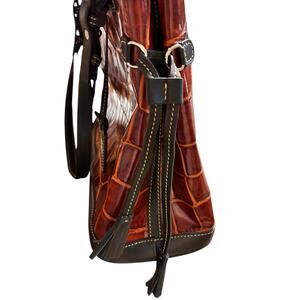Dooney & Bourke Rich Brown Red Orange Crocodile Crossbody Bag Pouch Key Set 3pc