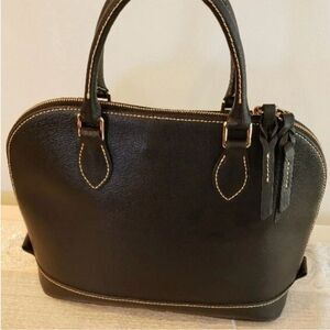 Dooney & Bourke Saffiano Leather domed Zip Satchel Bag Top Handle Black NWOT