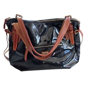 Dooney & Bourke Satchel Handbag Black Patent Leather Nina Large VTG Logo
