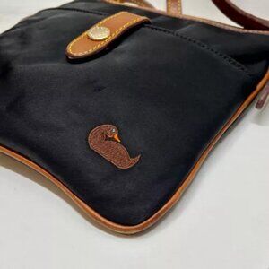 Dooney & Bourke Shoulder Bag Crossbody Black Nylon Brown Leather Trim Duck Logo