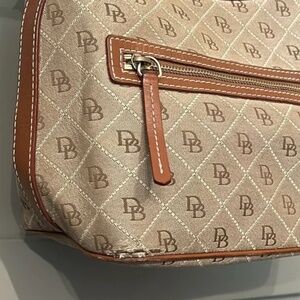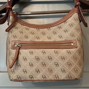 Dooney & Bourke Shoulder Bag Monogrammed Canvas Leather Trimmed Brown Tan