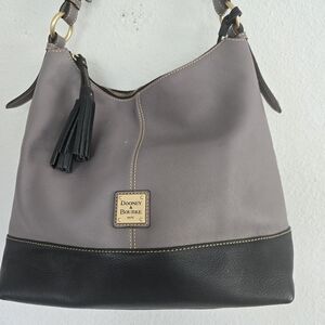 Exellent condition exterior, inside is peeling pls check all pictures Elevate your style with this chic Dooney & Bourke shoulder handbag in the Sophie Florentine line. Crafted from high-quality leather, this hobo bag boasts a colorful gray and black colorblock pattern with a trendy tassel accent. The spacious interior is lined with a striking red color, providing a pop of color to your outfit.