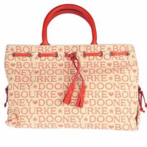 Dooney & Bourke Signature Tapestry Small Tassel Tulip Tote • Coral/Beige • Not 100% sure if it's original, but has tags :/