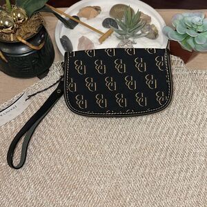 Dooney & Bourke Small Black Gold Canvas DB Logo Wallet Wristlet