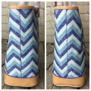 This authentic Dooney & Bourke bag is perfect for summer and year round. It is the small leisure shopper in the blue chevron print.