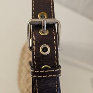 Dooney & Bourke Small Signature Shoulder Bag Tan Brown Leather Purse Hobo Mini. SIlver Dooney Duck charm with blue theme. In good vintage condition. NOTE: some fabric rub right above the leather trim at the bottom. Only in one spot. Liner is in ok condition. Some staining to be found. Leather is soft and in good shape. Zippers work well. Nice bag. Lots of life left in this classic piece. Item is in nice, preloved condition. Any spots or defects will be pointed out in listing. Item will be clean and double bagged for shipping. Please see photo for measurements. All measurements are as accurate as I can. Some variation in color and measurements can exist. Since I don’t accept returns, feel free to ask any questions. I want you to be completely thrilled with your purchase. Thank you for positive feedback!