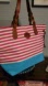 Chic tote with Watermelon and blue stripes. Bold blue base. Elegant braided handles. Dooney and Bourke Sullivan Tote. Made of nylon with Leather Straps. HAS NEVER BEEN USED! 16.5X11.5X6 NWOT. a small bit of rub on handle top...see pictures
