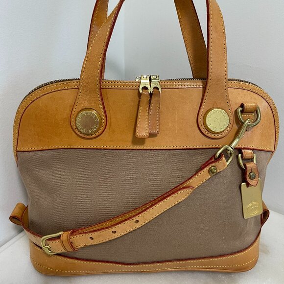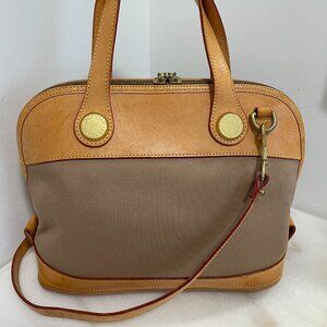 Dooney & Bourke Tan Canvas & Leather Vintage CABRIOLET Dome Satchel/Crossbody