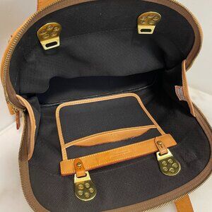 Authentic Vintage Dooney & Bourke Canvas and Leather Cabriolet Dome Satchel Crossbody Shoulder bag. This domed satchel bag is characterized by its use of Cabriolet cloth, which is stain-resistant, waterproof, and durable and natural Vachetta leather. The hardware is brass and substantial. This bag has two attached handles and a detachable, adjustable shoulder/crossbody strap. The interior is huge and will hold everything you need and then some. It includes a movable pouch that has 3 sip pockets. The pouch can easily be transferred from one side of the bag to the other to make it convenient to access whether you are right or left-handed. Dooney thought of everything. This beautiful bag is proudly made in the USA. This bag is in excellent condition and though it is pre-owned, was barely used. There is slight scuffing on the brass elements at the handles, some slight staining of the Vachetta on the bottom and minimal wear to the bottom corners. The Vachetta also shows some patina due to age, but that just enhances the beauty of this bag. Please see the photos and ask any questions.