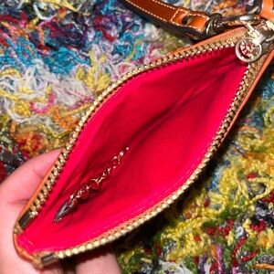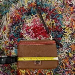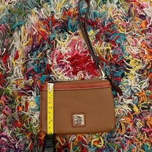 Dooney & Bourke Tan Pebbled Leather Wristlet with Gold Accents