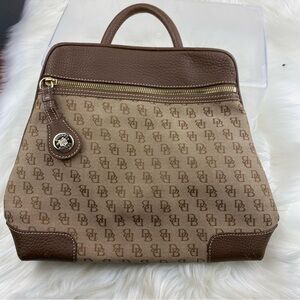 Dooney & Bourke Tan and Brown Monogram Backpack