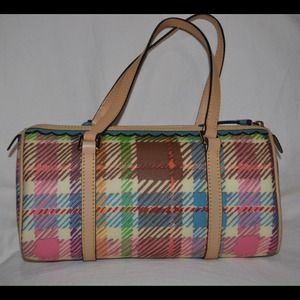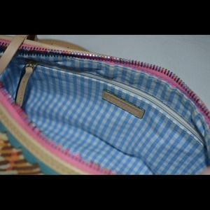 Adorable and colorful handbag, only used once! Teeth on the zipper are rainbow colored and the lining is baby blue plaid. It's the perfect size and is a super fun addition to an outfit!