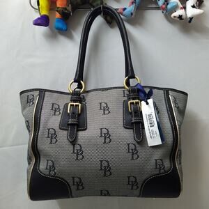 Dooney & Bourke Taylor Shopper Gray Canvas Leather Trim Satchel Tote Bag - NWT